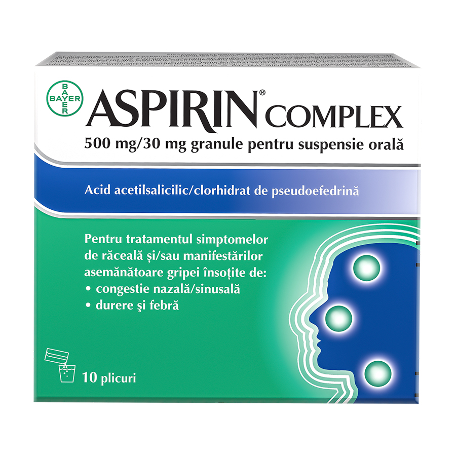 Aspirin Complex, 500 mg/30 mg, Cutie x 10 plicuri cu granule pentru suspensie orala, Bayer