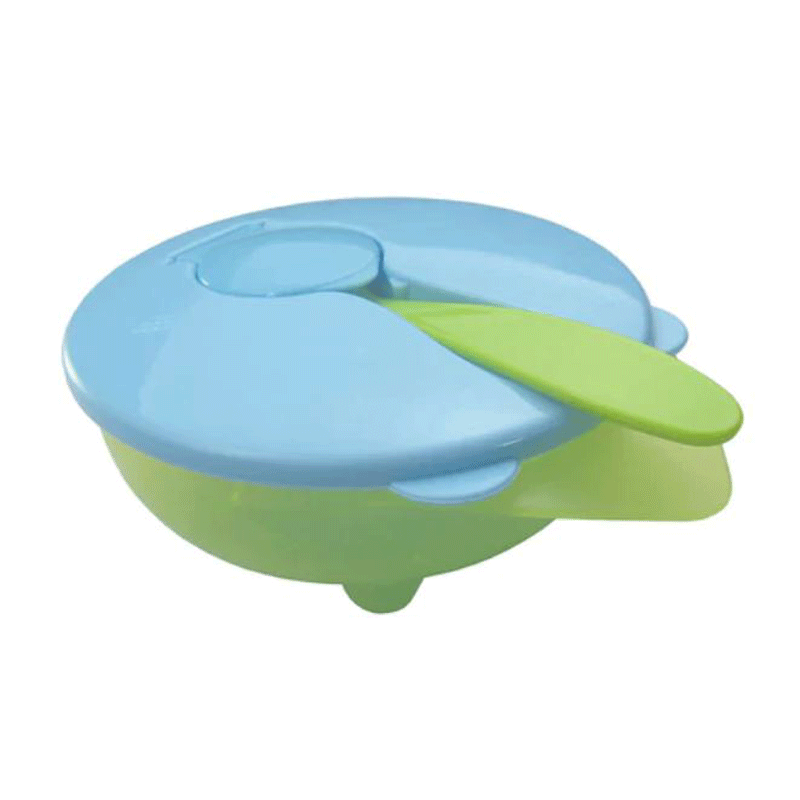 Bolul cu capac si lingurita „Primii Pasi”, Far East Trading, produs in China, este un produs capac etans, prevazut cu compartiment de depozitare a linguritei. Este perfect pentru perioada primei hrane solide datorita bazei anti-alunecare care previne varsarea accidentala a hranei. Capacul mentine hrana proaspata. Lingurita este ergonomica, cu suprafete aderente si moi.
