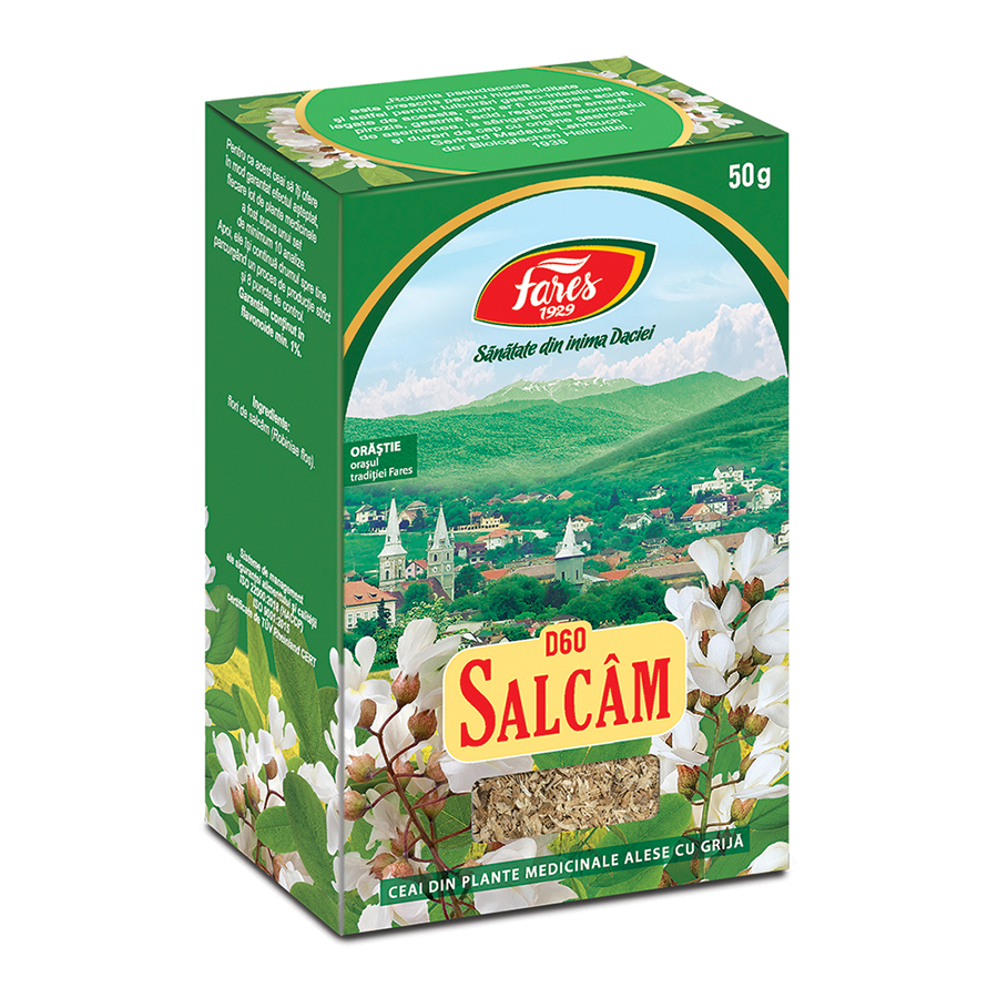 Florile arborelui Robinia Pseudacacia L., fam. Fabaceae, contin flavonoide (robinina, acaciina), ulei volatil, taninuri, acid cafeic si clorogenic, glucide.