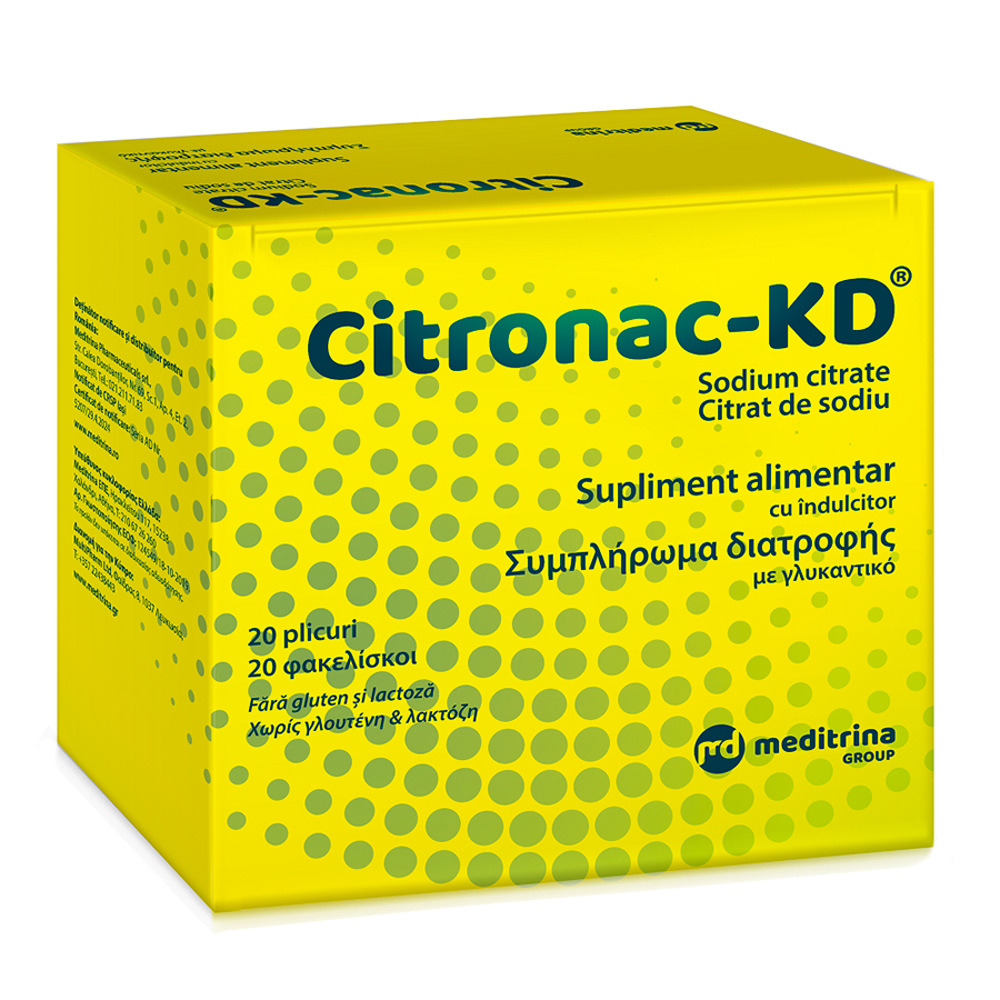 Doza de Citronac-KD® este de 2 plicuri pe zi, unul dimineața și unul seara. Doza de seară este mai importantă . Fiecare plic trebuie reconstituit cu 200 ml apă sau suc de fructe. Citronac-KD® poate fi consumat cu sau fără alimente.