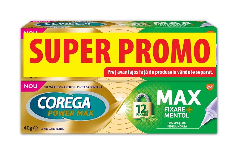 Corega Max Fixare+ Mentol duo-pack, 2x40 g, Haleon Romania