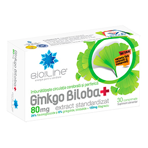 Ginkgo Biloba 80 mg cu magneziu prin extractul standardizat de Ginkgo Biloba: