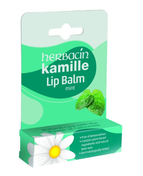 Balsamul de buze cu menta si musetel Herbacin, 4,8 g, produs de Herbacin Cosmetic, Germania, are proprietati de protectie si nutritie a buzelor, datorita combinatiei de ingrediente bioactive derivate din extracte de flori de musetel si menta proaspata. Diversele tipuri de uleiuri si ceara vegetala amestecate cu uleiuri esentiale de menta si rozmarin aromat asigura ingrijirea naturala a buzelor. Produs testat dermatologic. Este adecvat si buzelor cu piele sensibila.