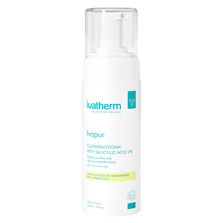 Ivapur Spumă de curățare cu Acid Salicilic 2% pentru pielea mixtă sau grasă cu tendință acneică, 160 ml, IVATHERM