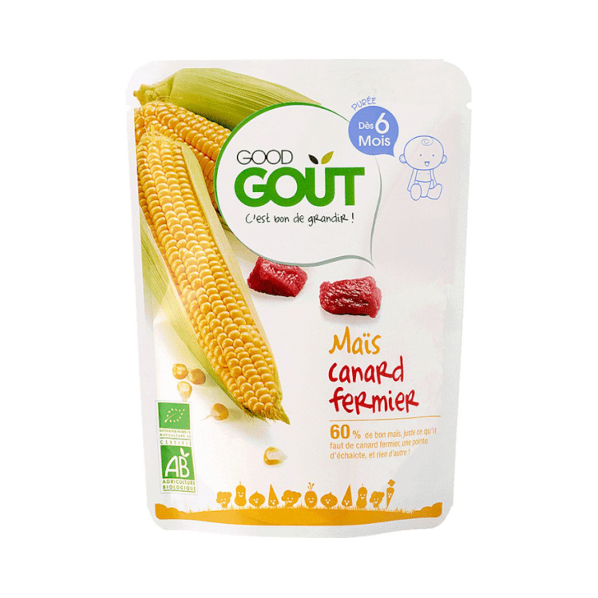 Descoperă un nou mod de a-ți hrăni copilul cu o rețeta delicioasă și sănătoasă cu Good Gout! Rețeta noastră conține ingrediente bio de calitate, cum ar fi porumb dulce, rață de fermă și ceapă esalota. Toate ingredientele sunt cultivate fără OMG (organisme modificate genetic), pesticide sau alte îngrășăminte chimice, astfel încât să puteți avea încredere în calitatea și siguranța alimentelor. Este potrivit pentru copii cu vârsta de peste 6 luni, rețeta este creată de un bucătar premiat în Franța și ambalajul nu conține BPA sau ftalați.