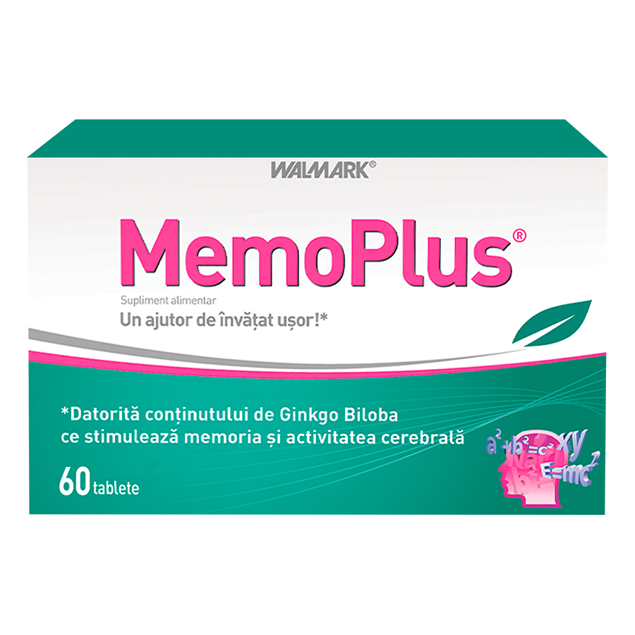 Supliment alimentar cu extract de Ginko biloba, vitamina B6 si magneziu pentru memorie şi concentrare.