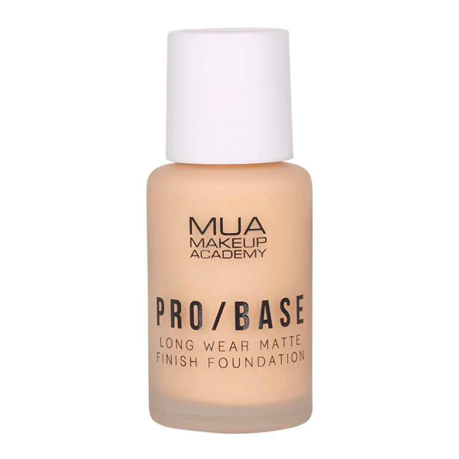 Fondul de ten MUA PRO / BASE Long Wear Matte Finish Foundation #154, produs in Marea Britanie, asigura un aspect impecabil cu acoperire completa si rezistenta indelungata. Are un finisaj mat care controleaza stralucirea pe tot parcursul zilei. Formula are in compozitie 39,7% apa, este imbogatita cu vitamina E, astfel ca nu usuca pielea. Nu contine parabeni.