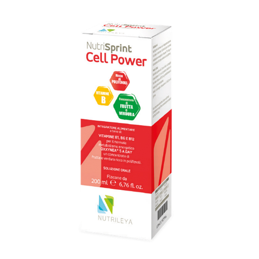 Nutrisprint - Cell Power 200ml este un supliment alimentar pe bază de Vitaminele B1, B6 și B12 pentru metabolismul energetic normal, cu Oxxynea®, un concentrat de fructe și legume bogat în polifenoli.