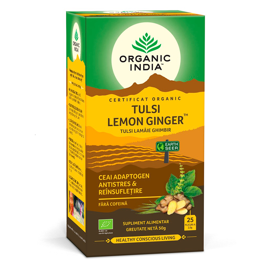 Organic India Ceai Adaptogen Tulsi Lamaie Ghimbir, 25 plicuri, BIO, Innovoris Labs