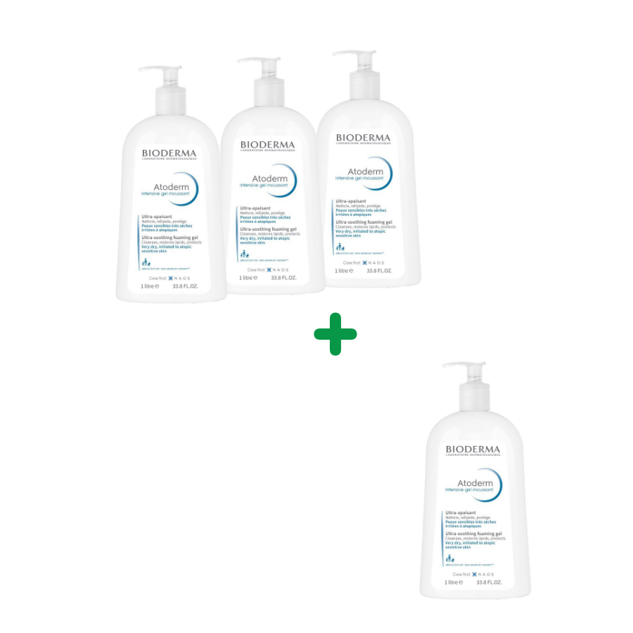 Cumpara pachetul Atoderm Intensive gel spumant si primesti a-4 a cutie gratuit. Campania este valabila in perioada 06-30.11.2025, in limita stocului disponibil.