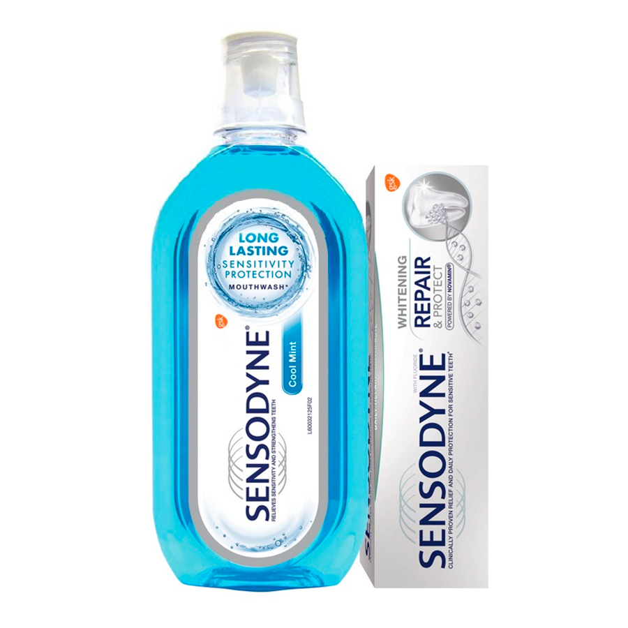 Pachet Pasta de dinti Sensodyne Repair & Protect Whitening, 75 ml si Apa de gura Cool Mint, 500ml GRATIS, Haleon Romania