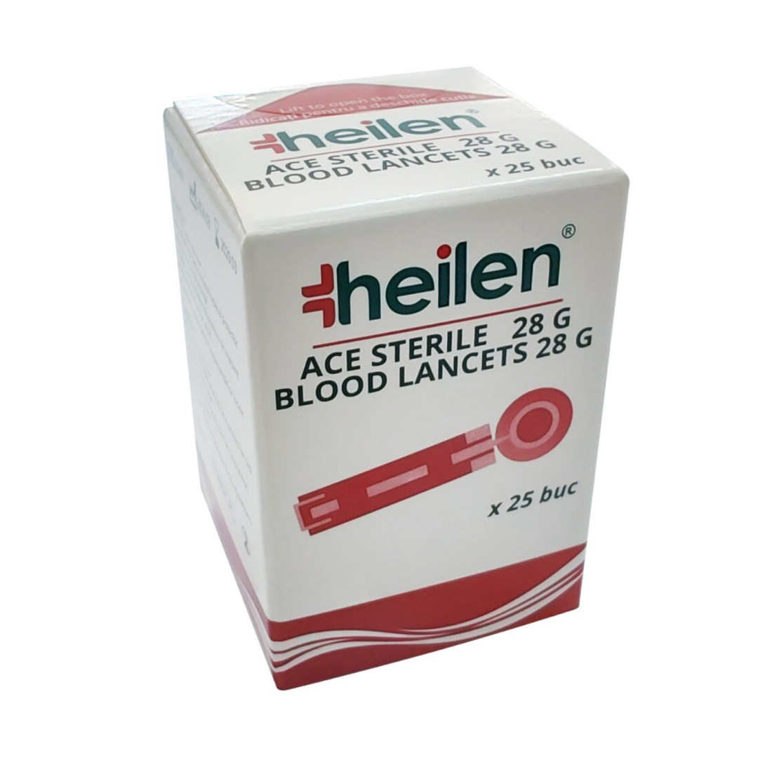 Setul de ace sterile Heilen AS28G este conceput pentru monitorizarea eficienta si sigura a glicemiei. Fiecare ac are o grosime de 28G (gauge), ceea ce inseamna o intepare fina, ideala pentru persoanele care isi testeaza frecvent nivelul de zahar din sange. Aceasta grosime ofera un echilibru optim intre confort si eficienta in recoltarea sangelui capilar.