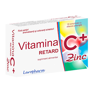 Vitamina C Retard + Zinc. Datorită compoziției sale speciale, permite eliberarea treptată a vitaminei C în organism. Vitamina C și zincul contribuie la funcționarea normală a sistemului imunitar și la protejarea celulelor împotriva stresului oxidativ.